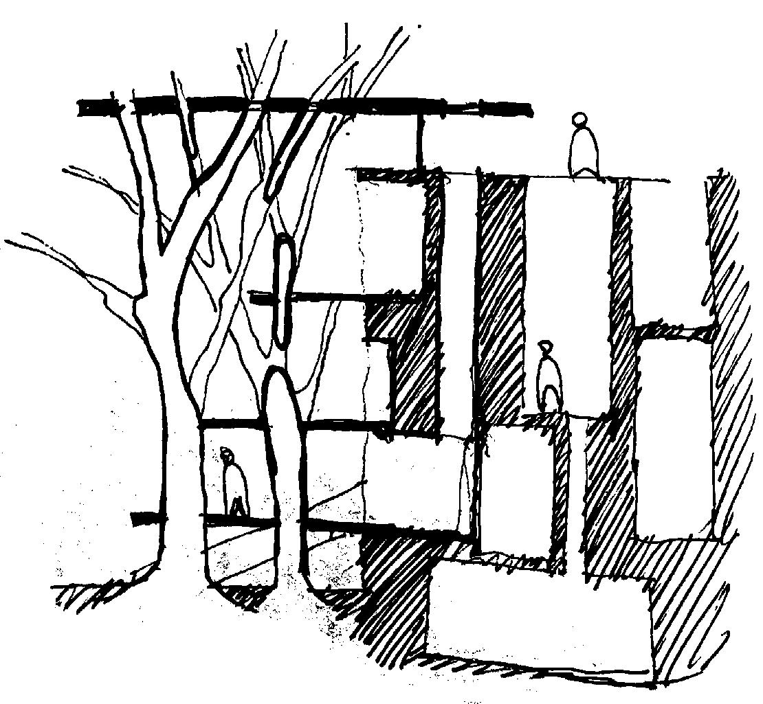 Both precedents are multistoried architectures where several floor plates hover one above another. The otherwise uninterrupted and isolated horizontal surfaces are penetrated and thus connected by a series of vertical operations with both positive and negative space, such as the tree branches in the treehouses and the circulationa and light wells in Gae House.