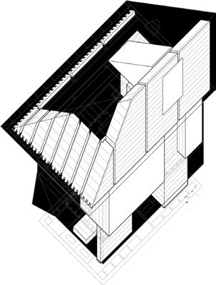 Literally translates platform-shaft structure into a system of acrylic boxes penetrated by wooden shafts