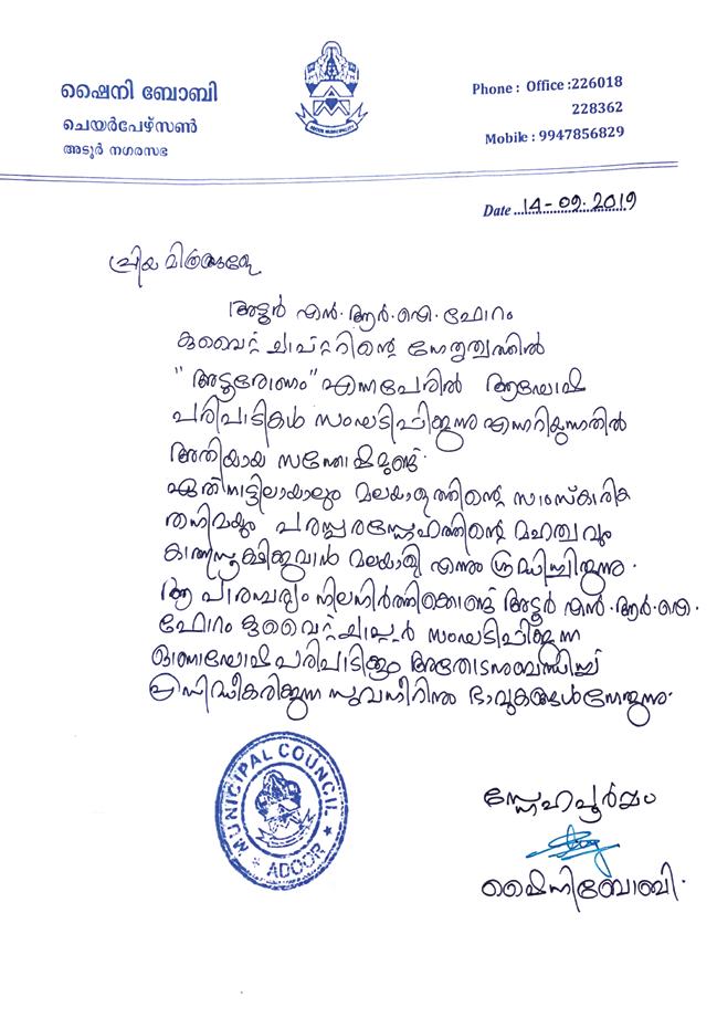 Once again thanks to Adoor NRI Forum Office Bearers, Advisory Board, Executive Members, and all our NRI family members to make this opportunity to become fruitful.