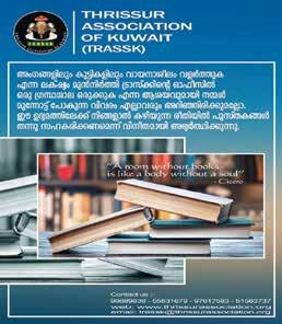 Keeping the values of Thrissur, the locals from Thrissur in Kuwait pave way to form a fellowship of Thrissurians to gather, to celebrate and cherish the rich culture of Thrissur in this region, called Thrissur Association of Kuwait (TRASSK). TRASSK is a non-profit, non-political, secular and cultural organization constituted in 2006 with the stated aims of social, educational and cultural purposes to unite the Thrissurians under one umbrella.