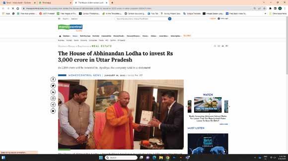 In a significant display of commitment toward the development of this city, The House of Abhinandan Lodha® has announced a massive investment of `1200 Crore solely dedicated to the economic development of the city. The inauguration of a new office in Ayodhya marks a significant milestone for the firm.