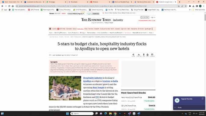 Ayodhya's transformation is a symphony of devotion and innovation. And within this luminous embrace, visionary companies are taking center stage, each a note contributing to its progress. Various industries are flocking to Ayodhya as tourism is set to witness accelerated growth.