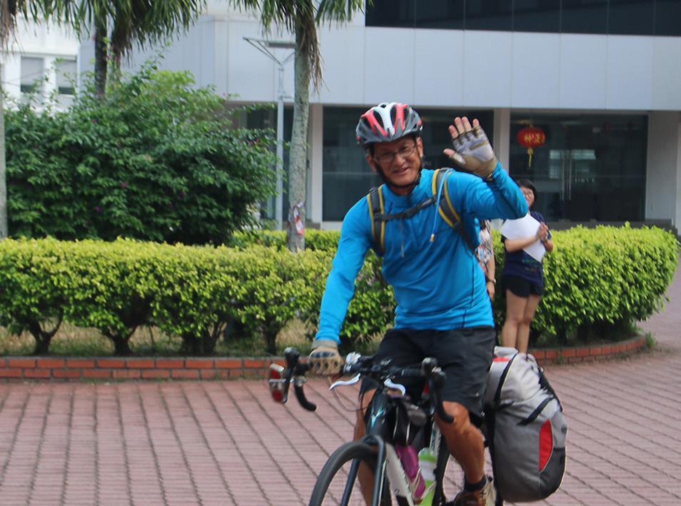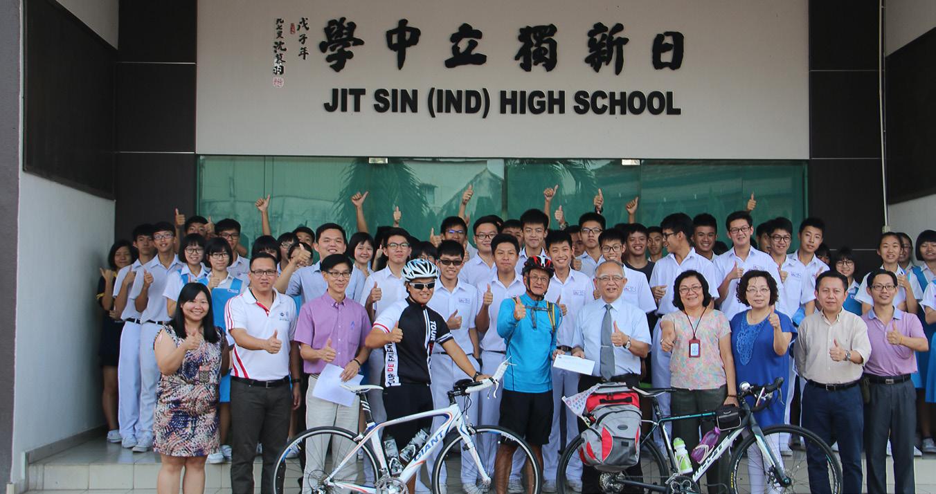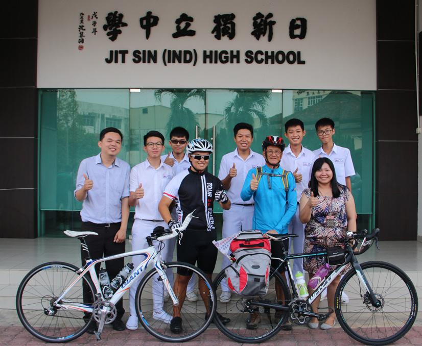 马来西亚半岛为柔佛州 笨珍培群独中筹款的前独中教 师朱培兴经过25天的骑行,昨 日安全抵达大山脚日新独立中 学。这些天的骑行在路上见到美 丽的风景及许多好人好事,让 他心中充满感动,更有能量继 续接下来 的行程。而接下来, 他将经由西海岸回到柔佛。为 了支持朱培兴先生及协助笨珍 培群独中筹募,日新独中师生 共筹得4600令吉,由日新独中 校长移交予朱培兴先生。