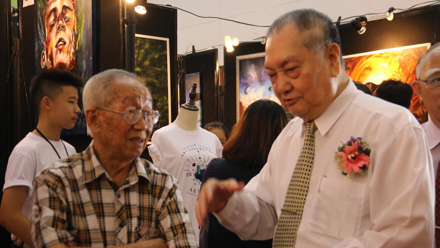 日新独中第一届初中毕业校友陈昌孔老师亦出席商美班常年展,为画展添 加一块艺术交流的画面。陈昌孔老师与董事长高级拿督斯里郑奕南为初中同班同 学,两人在画展中交谈甚欢。陈昌孔老师是我国水墨画界知名前辈。