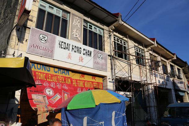 山脚义学堂”碑文隐藏在 小贩木柜后,一直到近年 才被发现。