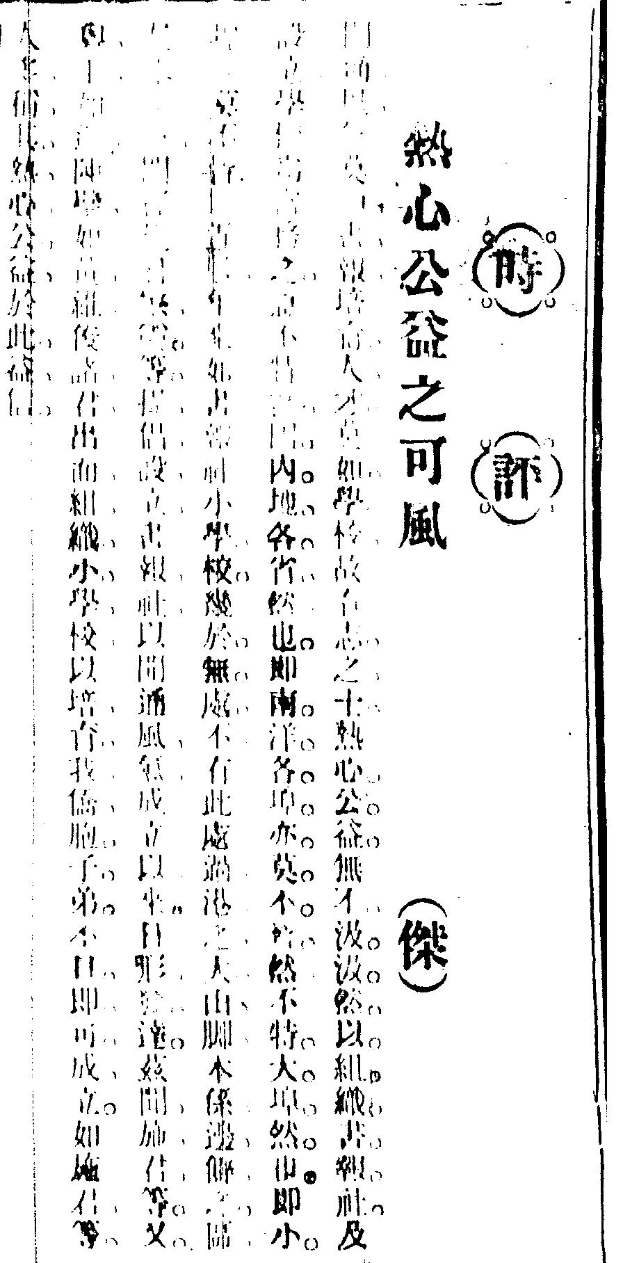 当时或以《三字经》、《百家姓》、 《千字文》和一些实用的珠算为授课 内容。一些私塾或可能是短期性、副 业式、缺乏周密的计划,学生基本上 没有年级限制。阅书报社诸君子因感 私塾办理不善,乃议决创办学校,于 是与福德正理事合力创办日新公立学 校,迎来新式学堂的崭新时代。