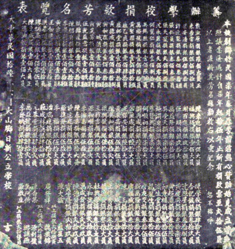日新学校创办前,曾有过一段不算长却颇 为重要的私塾教育时期。赖于大伯公的冥 佑及本校卢荣成老师的发掘,立于光绪廿 壹年(1895)的《大山脚义学堂碑》总算 为日新学校的创办寻回了根源。