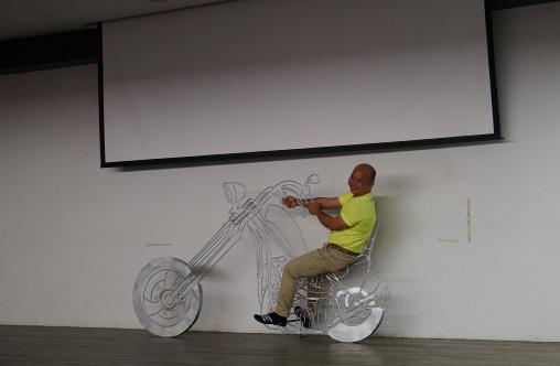 李祥校友提起初创业时,他想起了当初自 己满怀期待地拎着两个处女作品“林冠英人 像”及“老爷摩托车”,到处奔波寻找买 家,但到后来却是一场空。当时,父母都劝 他放弃,回到铁厂发展。他不但没曲意逢 迎,还向父母争取两年奋斗的机会。