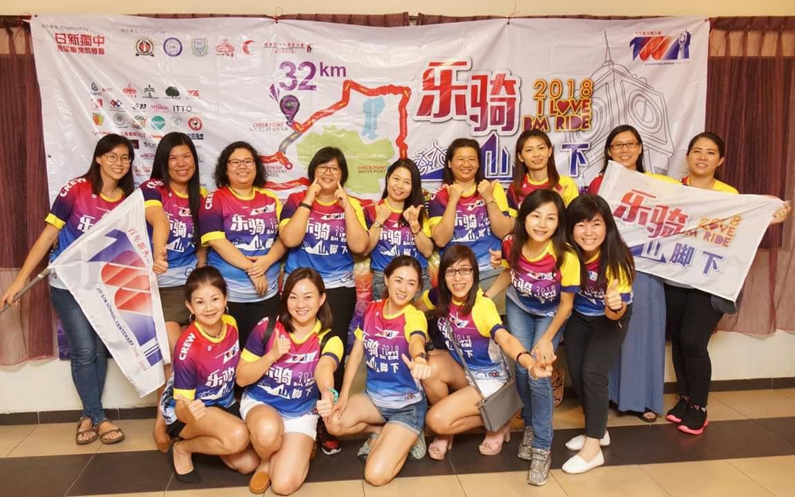 2018年8月5日(星期日),让原本一抹寂寥 及黑黝黝的清晨校园,渲染上熟悉的 嬉闹声。左一声的嘘寒问暖,右一声的 准备就绪在谈笑风生中,唤醒了母校的 静寂校园。俯瞰校园,除了昔日不见今日 相聚的校友们外,泊油路上停搁着战绩 不凡的单车。无论是翻山越林或跋山涉水 的单车,车身总是刻画着自己的战绩与 阅历。霎时平凡,刹那美丽。相聚的欢乐, 在大伙准备就绪后,齐身向35KM的旅途前 进。阳光明媚的晨曦,让踏入100周年庆的 母校,掀开一世纪的教育乐章。