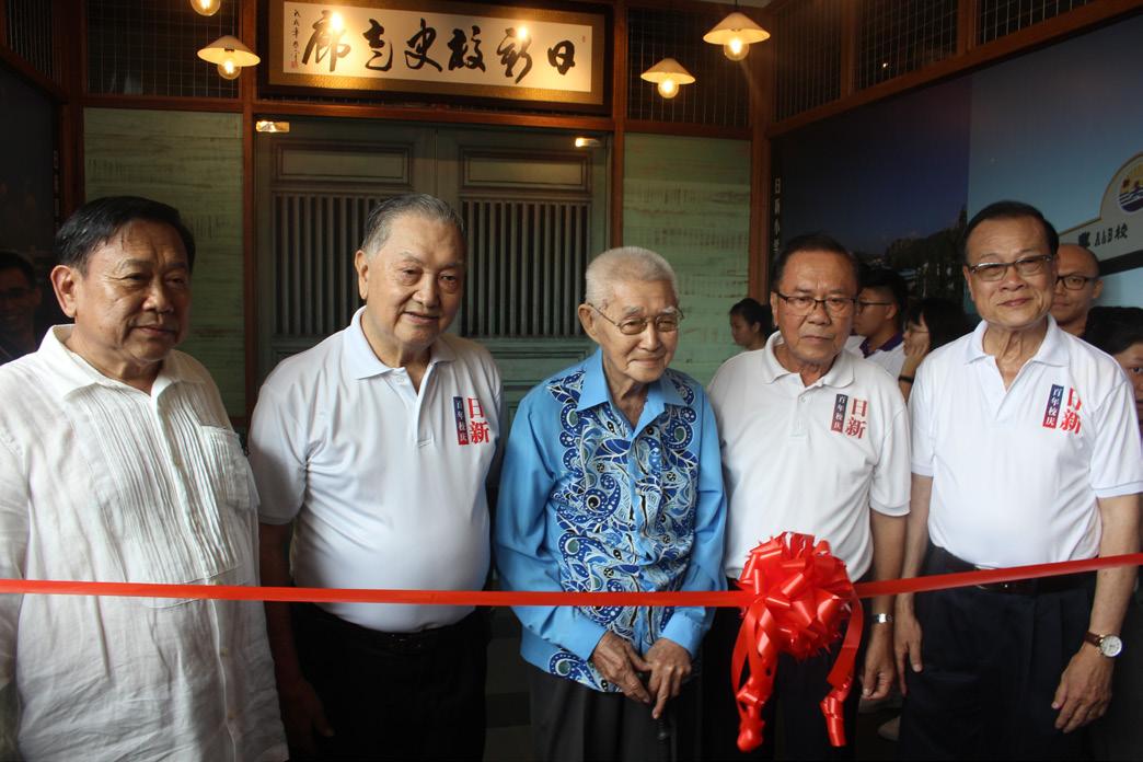 当日由与日新同岁的老校友林运福校 长在董事长拿督斯里郑奕南先生、总 务拿督杨云贵先生、福德正神理事长拿 督庄佛和先生及署理董事长拿督黄维忠 先生的陪同下,主持日新校史走廊开幕礼。