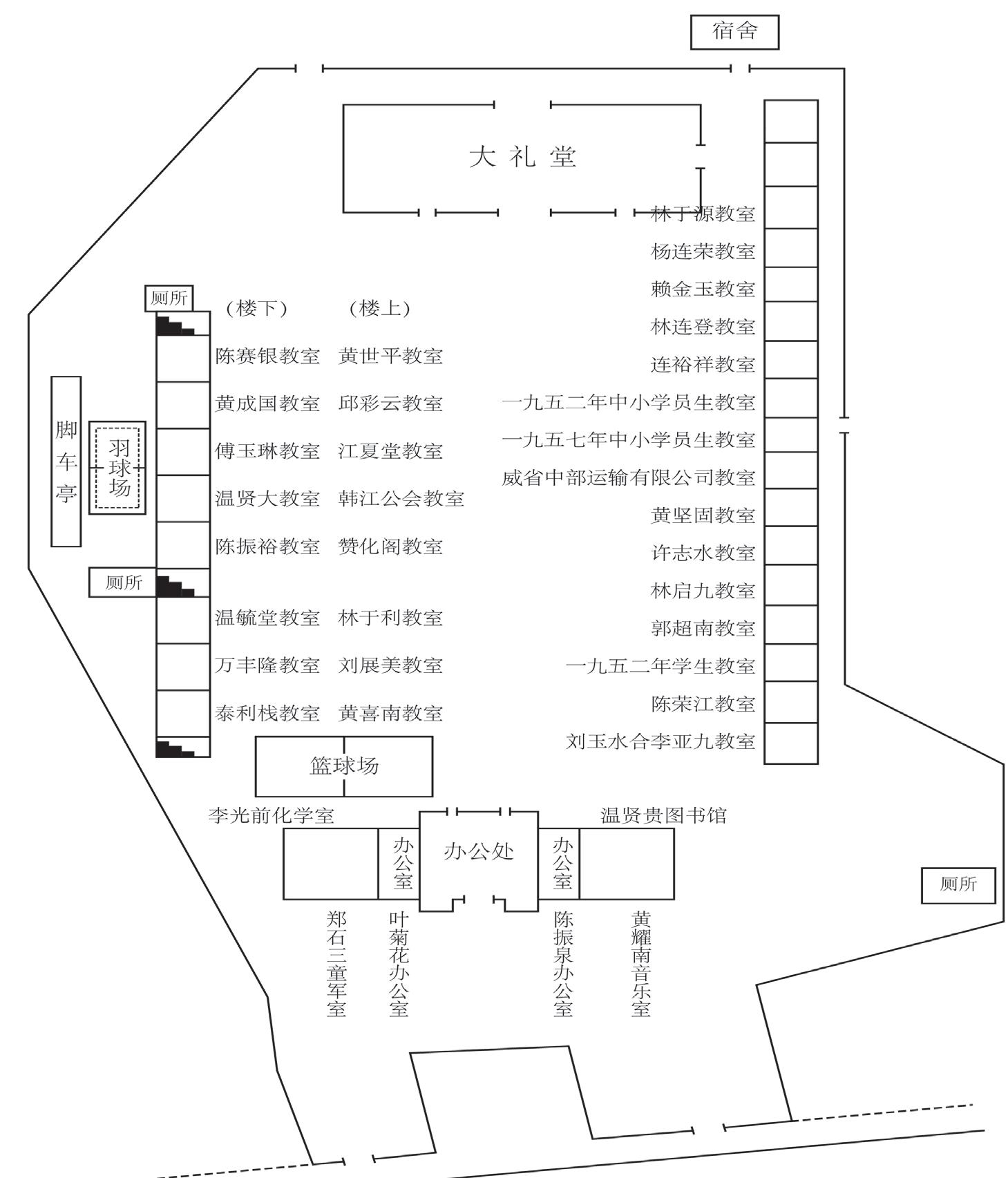 失修,暂为外地教师宿舍。董事部 担忧建筑倾塌,成立建校委员会, 向外募捐。
