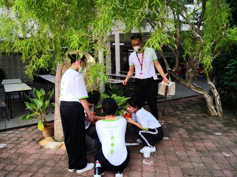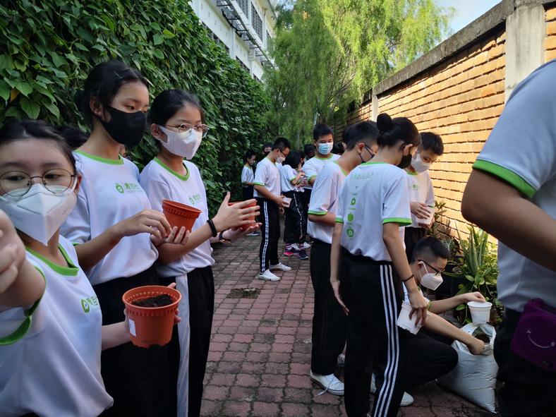 社员在校园内一起种植向日葵, 培养种植的乐趣及耐心。