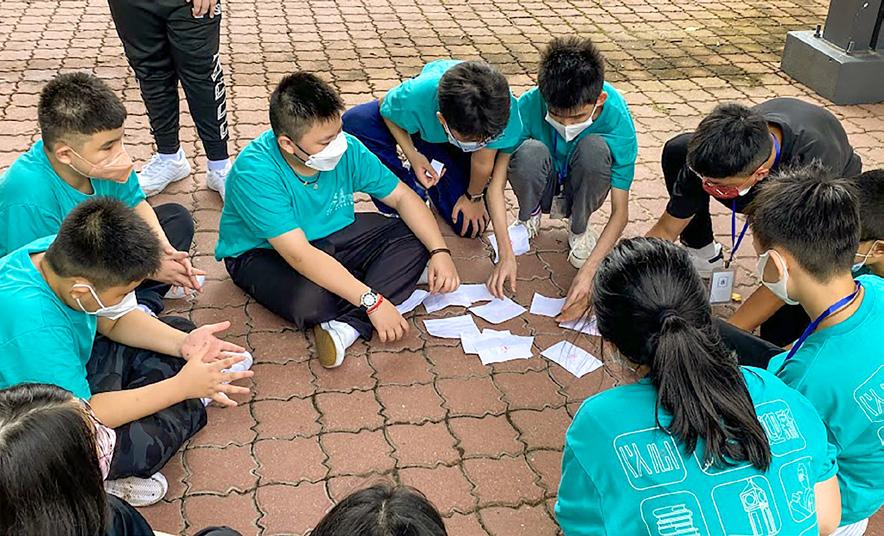 培养领导能力与团队合作精神,从中提升凝聚力和团结能力, 共同完成每一项游戏。除此之外,孩子们以良性竞争的方式享 受每一场游戏所带来的欢乐感,通过紧张刺激的竞争氛围提 高孩子们的参与感。跑站游戏通过团队比赛的方式进行,他们 从游戏中更了解每一位伙伴及队员的性格与能耐,透过各种不 同组合就会出现不一样的行为反应,也碰撞出各种灿烂耀眼的 火花。