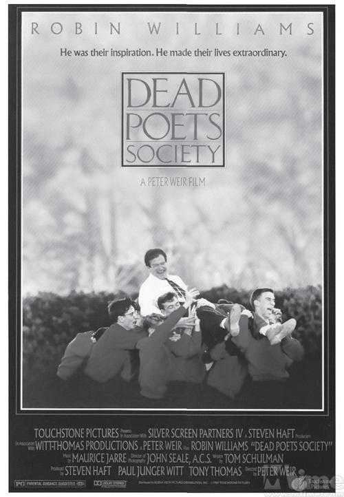 罗宾威廉姆斯饰演一位在男校任教的老师,教授诗歌文学。他的教学 方式颇为惊世骇俗,第一节课就让学生撕掉课本,然后让学生站在课桌 上,教会他们从不同的视角观察司空见惯的事物,以燃起他们的激情。