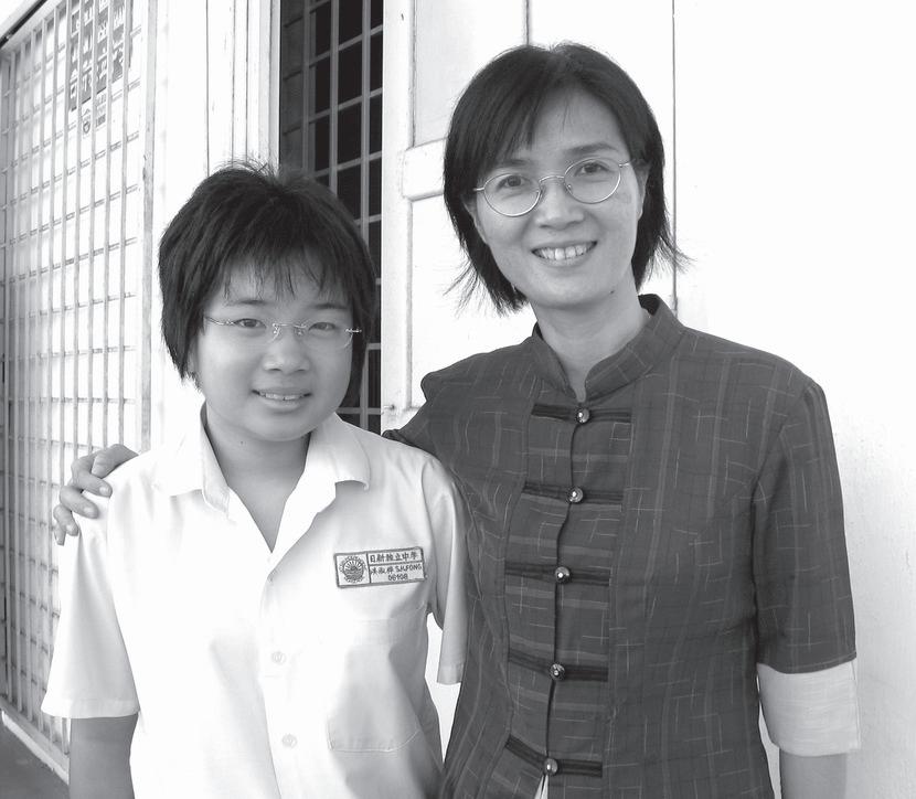 谈到母亲节这个重要的日子,金美老师表示她 并没有特别去看重这个节日,而且孝养父母本是为 人子女的责任。百善孝为先,能及时孝养自己的 父母,就是我们最大的福报,而一天母亲节的庆祝 又怎能比得上平日的嘘寒问暖呢?淑桦对于母亲节 其实也没有什么特别的想法,因为她觉得只要作子 女的能够每天都陪伴在妈妈的身边,比任何的母亲 节礼物都来得实际。问及有关身为一个母亲兼老师 的身份所面对比较不同的一面,金美老师表示并没 有什么特别的感受,在学校,孩子就跟其它学生一 样,同等待遇。至于淑桦的表示,她觉得这种“特 殊身份”多少都会有些影响,因为妈妈是学校的老 师,她也会因此而感到比较压力,此外,她还偷偷 透露,幸亏妈妈并没有成为她的老师,因为她担心 当考试的成绩等等会成为别人的闲话或猜疑。