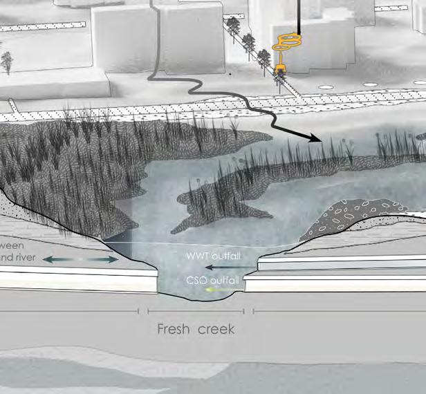 Humans have been inventing machines to produce labour, profits, and values. However, machines in out project are invented as imaginations for a different kind of labour on landscapes. Instead of exploiting the landscape, the ‘labour’ is a actually playful way for human and all apecies to experiment, interact with landscape.Hybrid machines on Jamaica bay act as a way of emerge hybrid water action, dealing with differnet problems in salt marsh degradation- pollution, sea level rise and erosion.