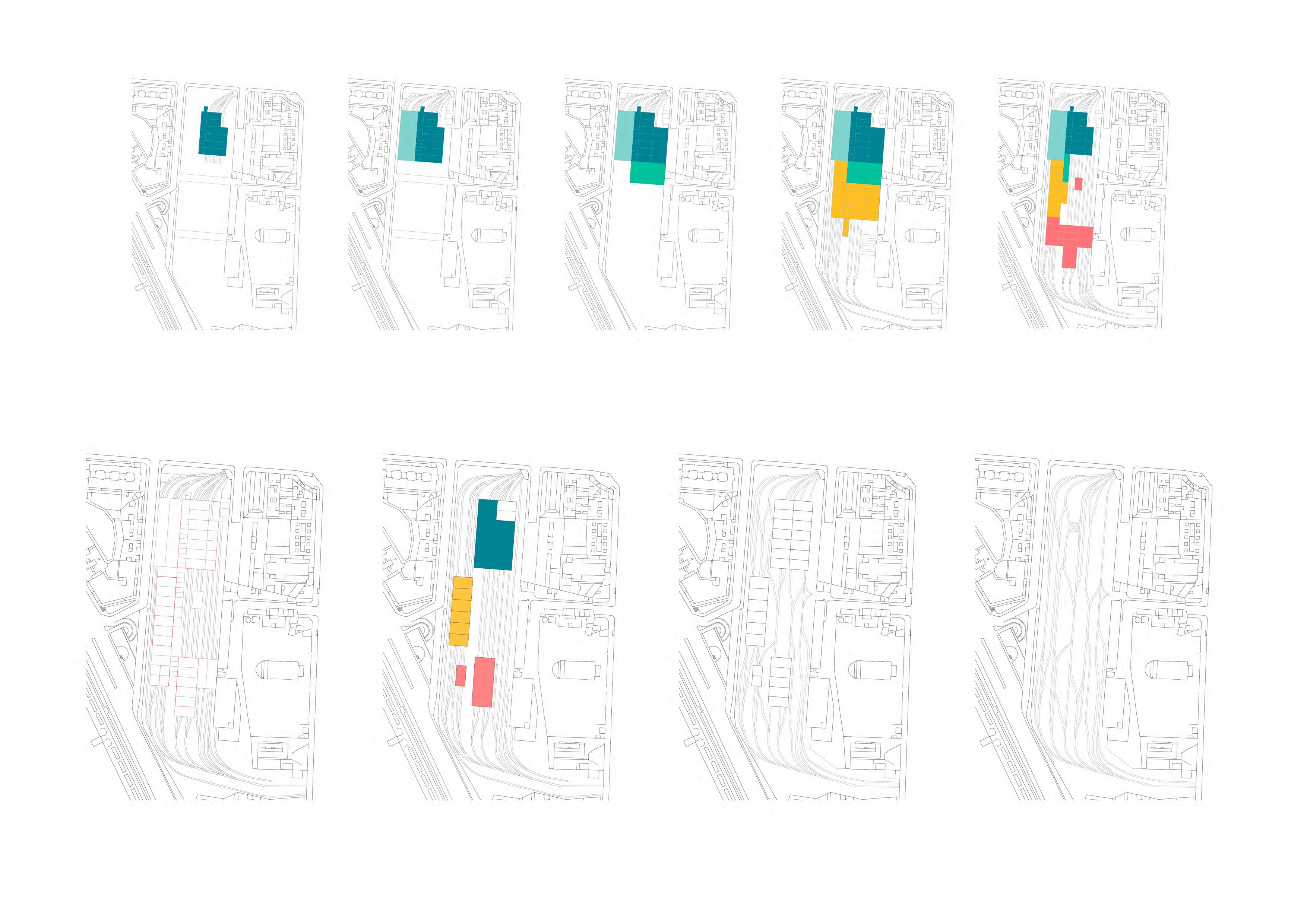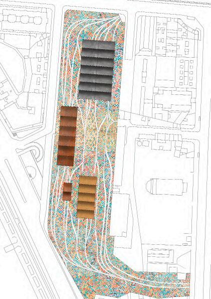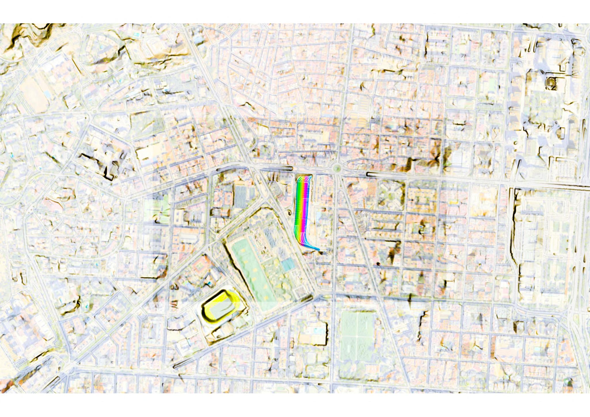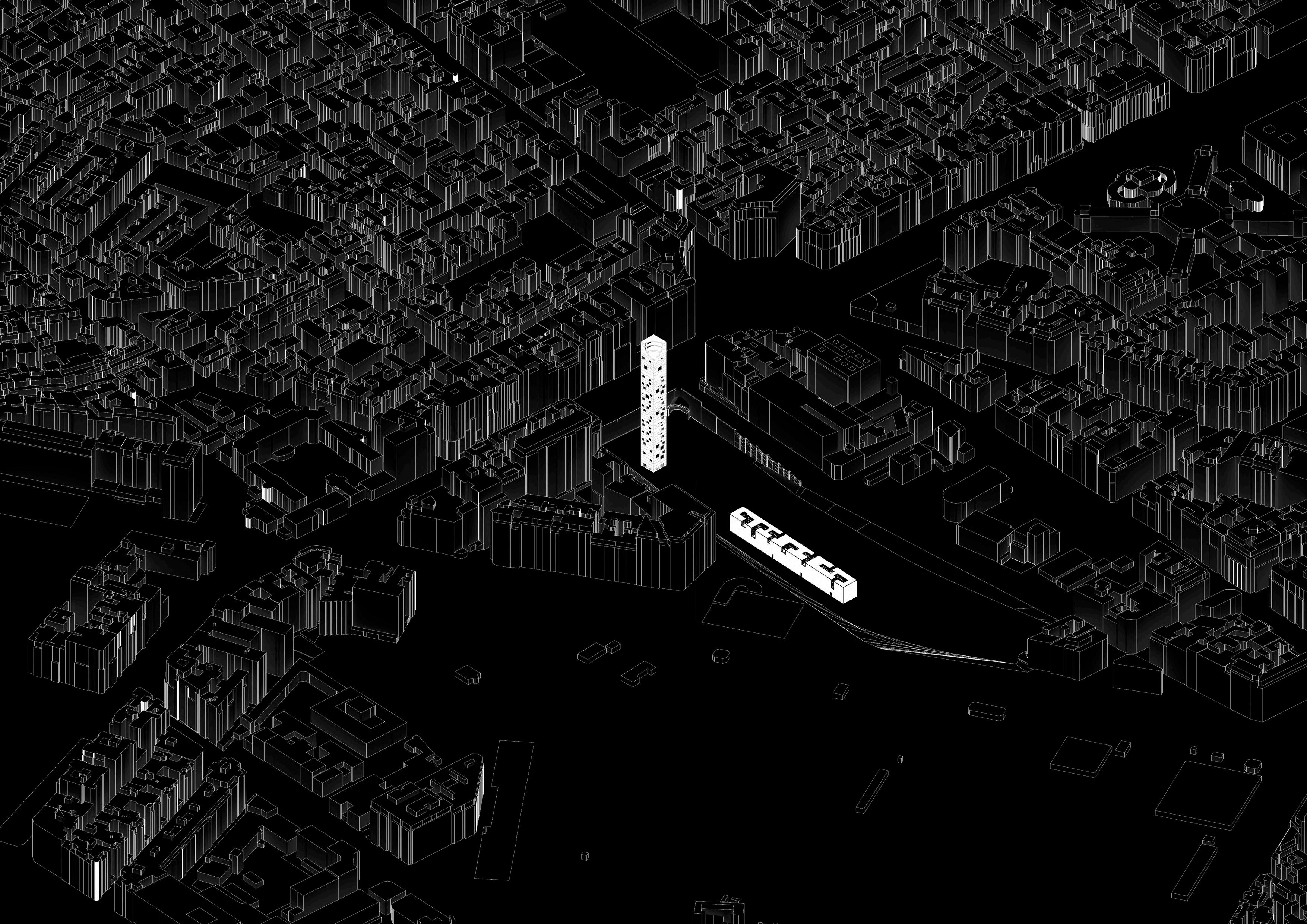 Un volver a las raices, ese pasado que sigue presente, esa memoria que nos remiten aquellos objetos... Los primeros poblados, el muro de las lamentaciones o el partenon. Traidos para crear un recuerdo, una sombra o una ruina de algo que siempre ha estado. La masividad del volumen busca crear un refugio de atmosferas, terrazas, vacíos y puertas... trayendo la brisa más limpia y lejana al centro de Madrid