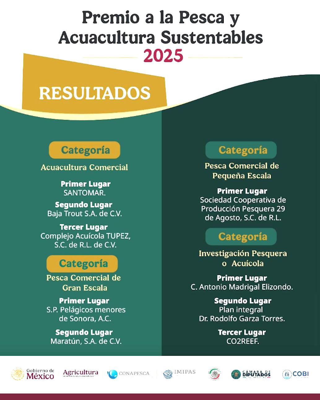 “Recibir el Premio a la Pesca y Acuacultura Sustentable 2025, otorgado por el Gobierno de México a través de la Secretaría de Agricultura y Desarrollo Rural (SADER) y la Comisión Nacional de Acuacultura y Pesca (CONAPESCA), es para Complejo Acuícola Tupez un reconocimiento que trasciende lo empresarial. Este galardón simboliza el esfuerzo conjunto de cada colaborador, de las familias que han confiado en este proyecto y de quienes creen que la acuacultura puede ser motor de desarrollo económico, social y ambiental para nuestro país”, expresaron.