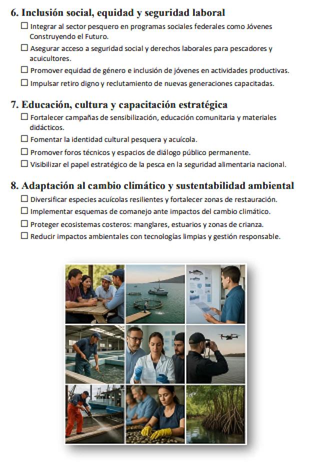 Respecto a la pesca y acuacultura, se mantendrá la entrega de apoyos directos a pescadores y acuicultores; se impulsarán acciones de sostenibilidad y vigilancia de los recursos pesqueros; así como medidas para promover su comercialización.