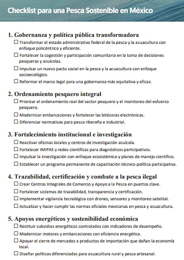 Entre las causas que han llevado a las pesquerías a ese estado destacan la sobrepesca; la pesca ilegal y el bajo cumplimento del marco regulatorio; la destrucción de los hábitats marinos; y la contaminación y el deterioro natural que sufren los sistemas lagunarios y costeros.