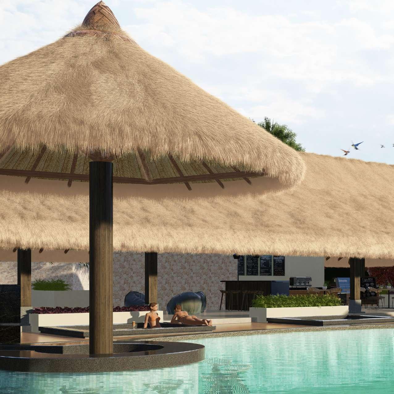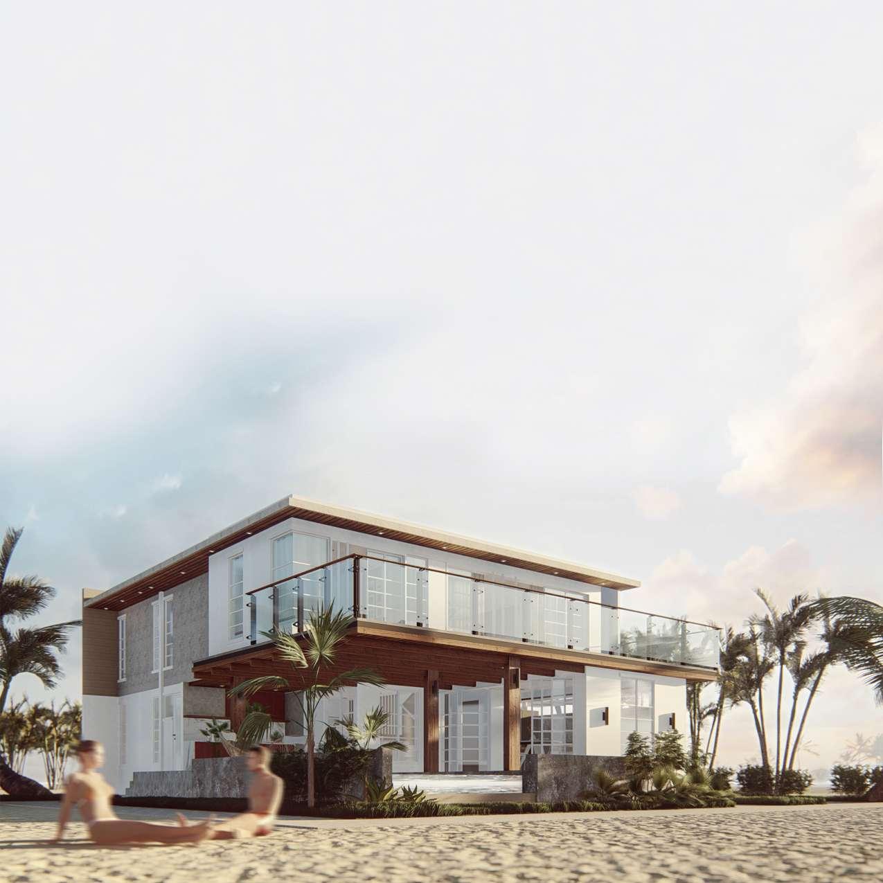 The Architect designed an infinity pool that visually connects the entry point to the open sea creating a seamless sightline in the communal area. Cabanas are placed as lodging for guests promoting privacy between guests and owner.