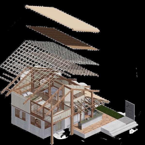 The existing Kubo was redesigned and renovated to achieve a symmetrical roof retaining and improving design elements and materials previously used.