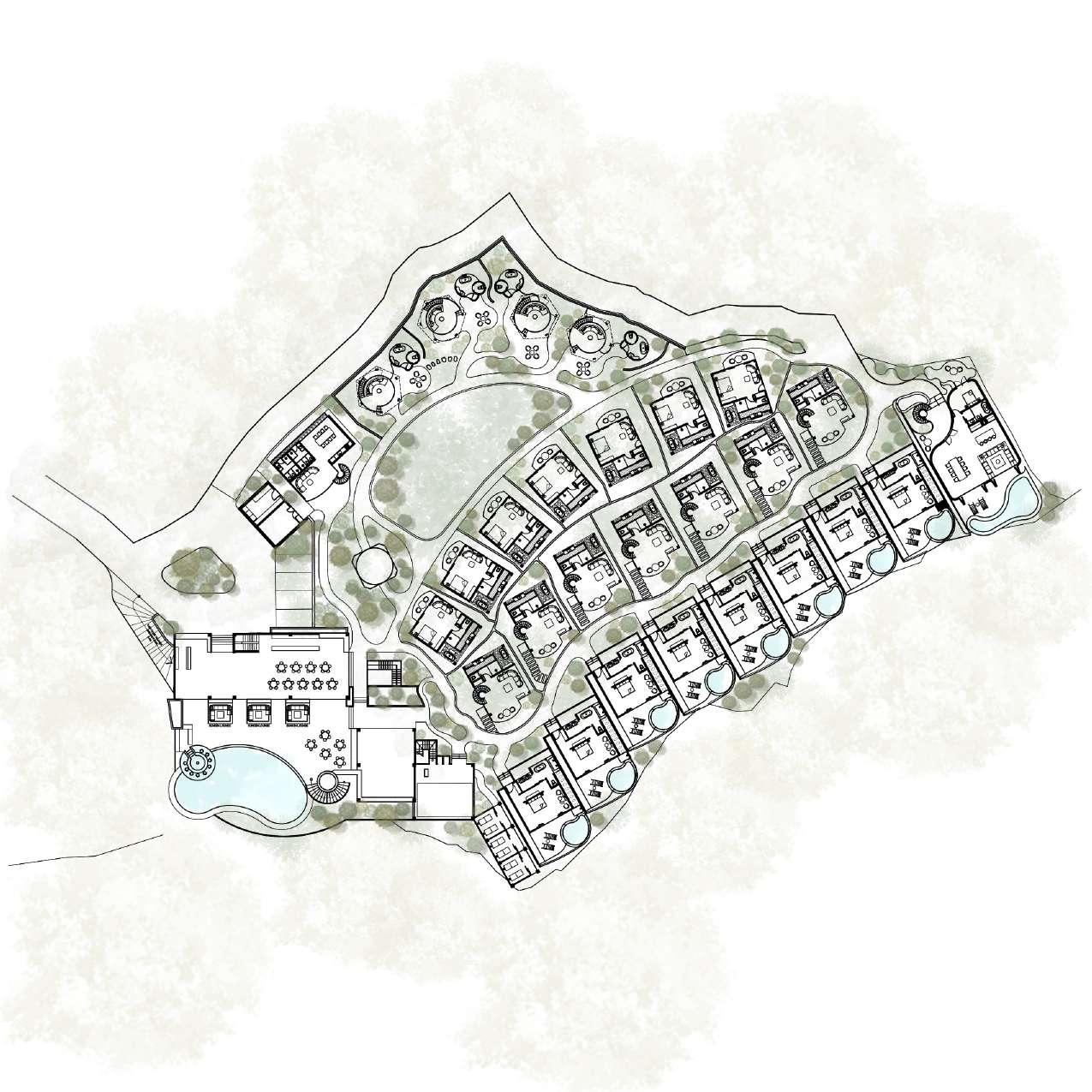The Client required a site plan that promotes a laidback communal area that revolves around the existing Main Villa.