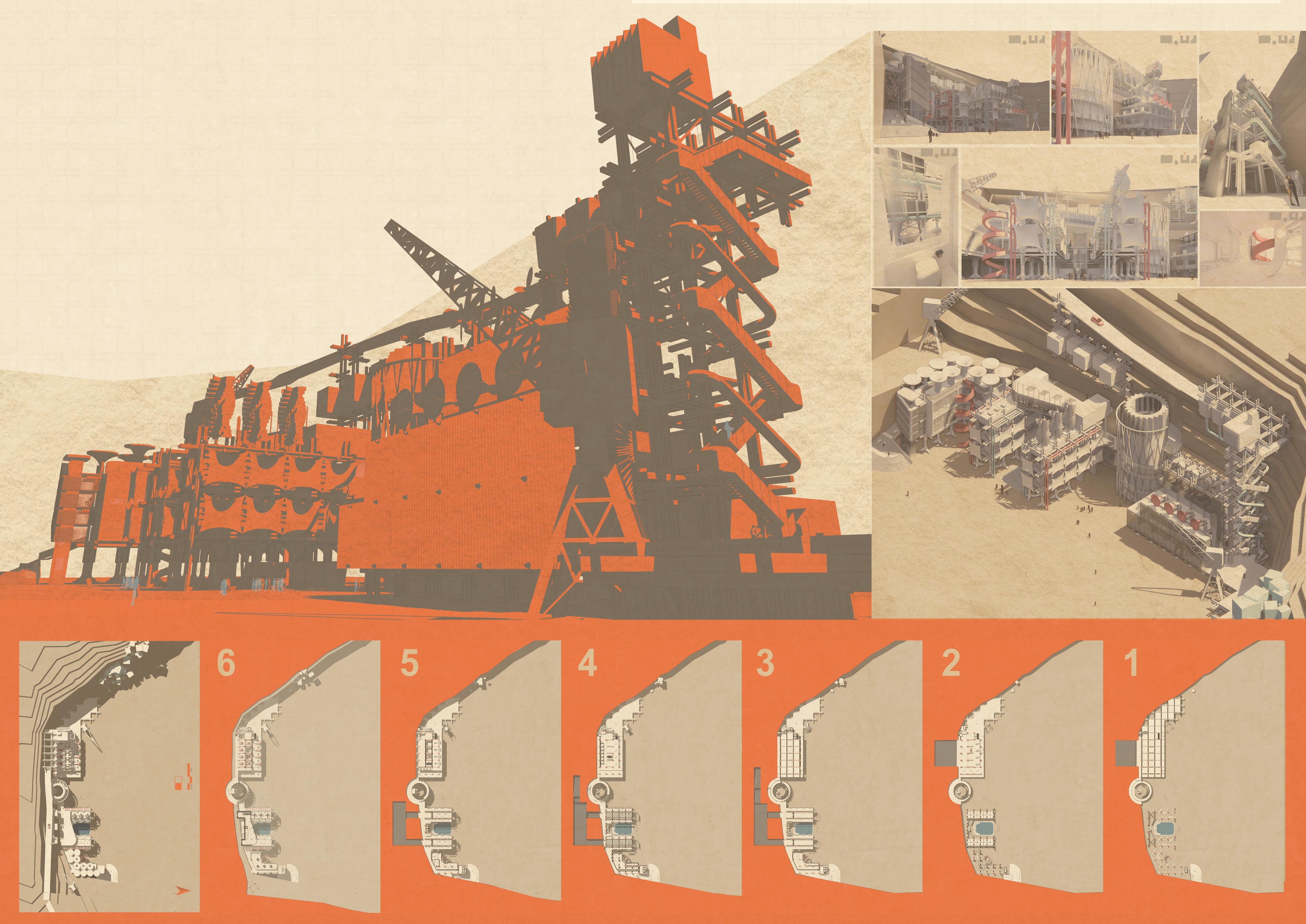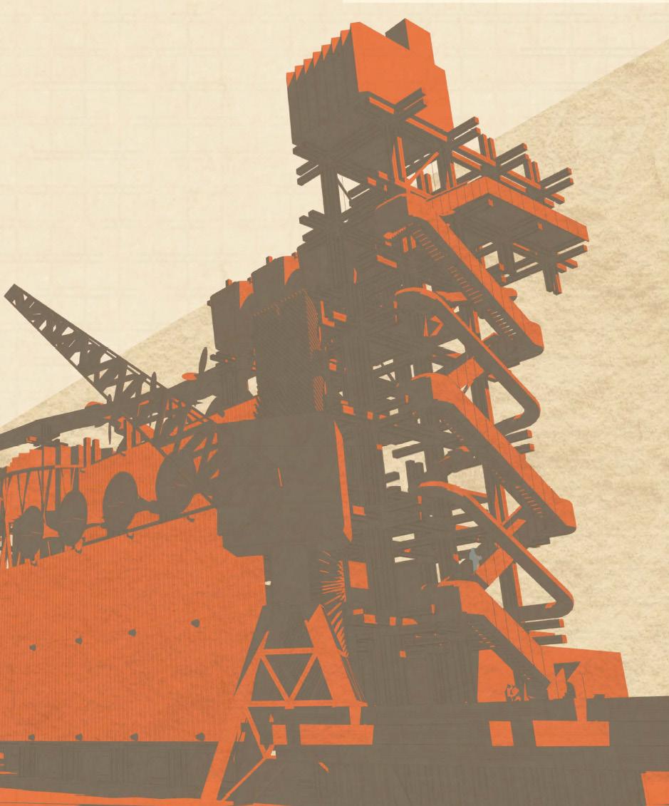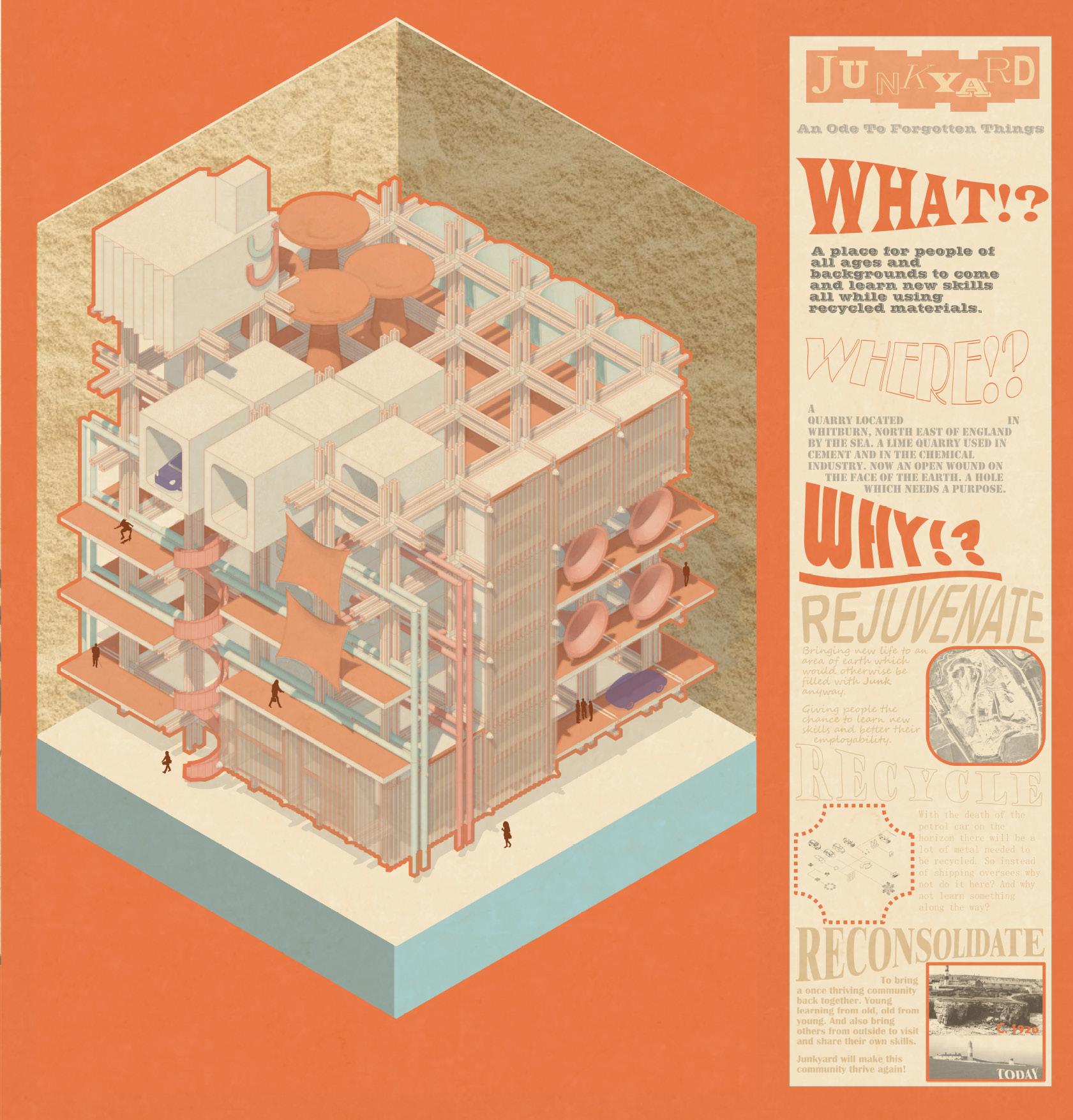 My Thesis Project at BArch. A Metabolist inspired place for work and learning in which the petrol car is memorialised. The project consisted of Workshops, Classrooms and a Creche. Cars would be brought in and used as parts to teach people skills to help thier employability. I loved this project but i feel i could have realised it better. I Have left the panels as they were in the exhibition to convey the story best.