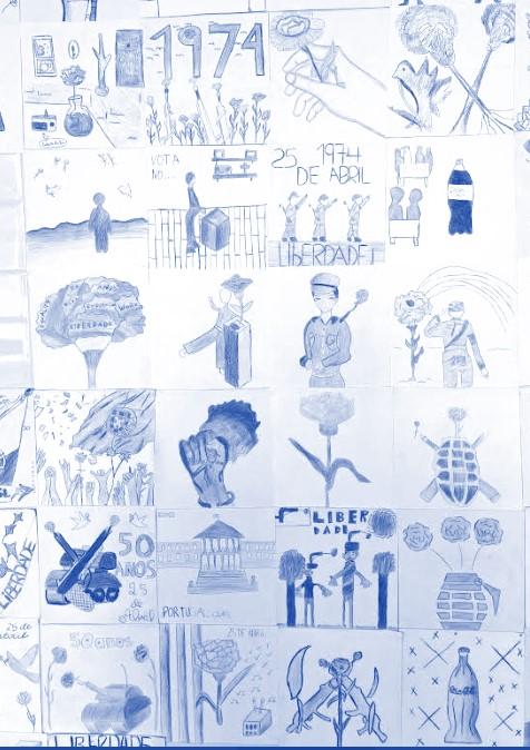 Num outro espaço da escola, os alunos da turma G realizaram uma instalação composta por 50 cravos que definem um percurso de liberdade e abraçam outras atividades realizadas por alunos de quatro anos letivos anteriores, em diferentes contextos - todos eles de Liberdade.