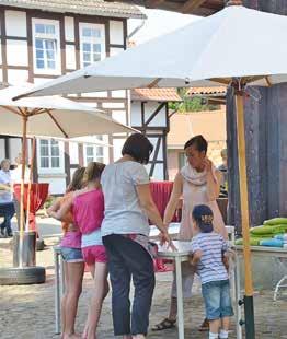 Anwesenden ab. Je nach Thema bereiten sie musik-, theater- und kunstpädagogische Konzepte vor, die als Grundlage der Workshops dienen. Hinzu kommen aber auch immer die Ideen und Vorlieben der TeilnehmerInnen. Nichts entsteht durch bewusste Lenkung, alles aus dem gemeinsamen Reden und Tun der Beteiligten heraus. Diese Grundeinstellung führt dazu, dass Projekte niemals in einem klar definierbaren Zeitraum durchgeführt werden können, weil sie sich unter der Beteiligung aller Hofgäste stets weiterentwickeln. Ein Thema wird erst dann beiseitegelegt, wenn das Interesse daran nachlässt.
