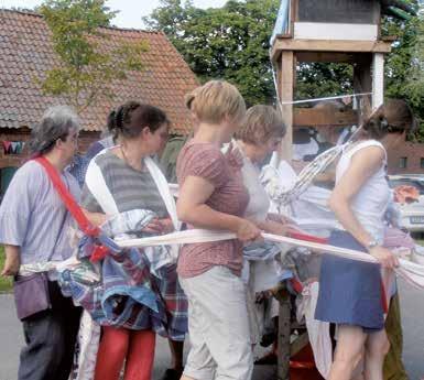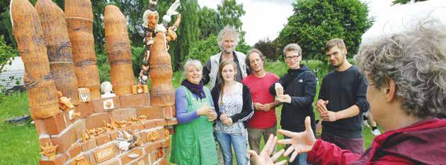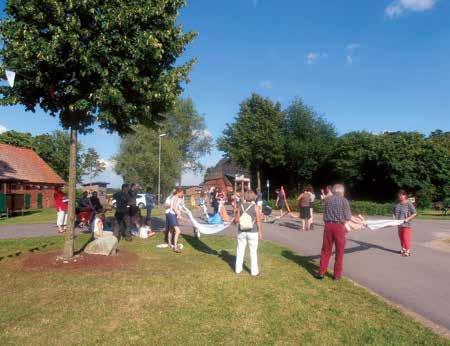 Weit draußen, zwischen den Feldern: Wie auf dem Künstlerhof Kranichschreie gearbeitet wird Klein Ringmar im Landkreis Diepholz muss man auf der Landkarte suchen. Doch wer einmal den Weg zu dieser kleinen Hofstelle inmitten der Natur gefunden hat, kommt meist wieder. Der Hof versteht sich als offener Kreativ-, Denk- und Experimentierraum. Regelmäßig finden hier Workshop-Wochenenden mit oder ohne bestimmten Themenbezug statt, zu denen alle Interessierten eingeladen sind. Durch Ankündigungen in der Lokalpresse werden die Menschen aus der Region über die Kreativangebote informiert und entscheiden sich meist spontan zur Teilnahme. Darüber hinaus werden Einzelpersonen und Initiativen als Multiplikatoren gezielt persönlich angesprochen. So kamen viele Kontakte zu Gehörlosen im Projekt „Die Entdeckung der Sinnlichkeit“ über eine Gebärdensprachlehrerin aus Bremen zustande. Unter den TeilnehmerInnen ist auch eine größere Gruppe von „Ehemaligen“: junge Erwachsene, die bereits weggezogen sind, aber an den Wochenenden zurückkehren, um die kulturellen Angebote auf dem Hof zu nutzen. Viele von ihnen sind Kunststudierende, die die Wochenenden durch eigene Workshops und Ideen wesentlich mitgestalten.