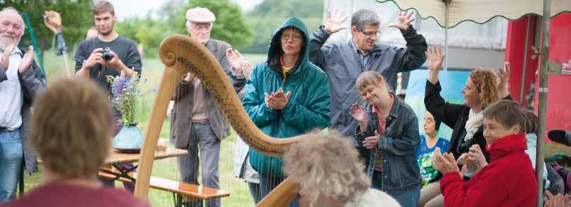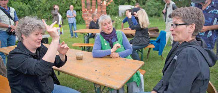 sie den Hörenden zu bieten? Was kann die Mehrheitsgesellschaft von der Minderheit lernen? Die Hörenden waren sehr an den Praktiken interessiert, die sich als Teil der Gehörlosenkultur entwickelt haben. Dass Gehörlose über eigene Kunstformen wie Gebärdensprachenchöre oder Gebärdengedichte verfügen, ist Hörenden zumeist gar nicht bekannt. Auf dem Hof bot sich nun die Gelegenheit, sich über kreative Ausdrucksformen auszutauschen, an denen Hörende und Gehörlose gleichermaßen teilhaben können. Hieraus gingen wichtige Impulse für neue Initiativen hervor, die gemeinsam mit externen Partnern in die Tat umgesetzt werden konnten. So wurde beispielsweise in Zusammenarbeit mit der Lebenshilfe in Bassum ein Gebärdensprachenchor gegründet: Eine Theaterund Musikpädagogin und ein Sonderpädagoge probten zwei Monate lang regelmäßig mit sieben mehrfachbehinderten BewohnerInnen eines Wohnheims – die Ergebnisse wurden zur Einweihung des Denkmals präsentiert. Unsere Gebärdensprachdozentin bot darüber hinaus einen zweitägigen Workshop an, in dem ein neunköpfiger Gebärdenchor typisch norddeutsche Lieder einstudierte.
