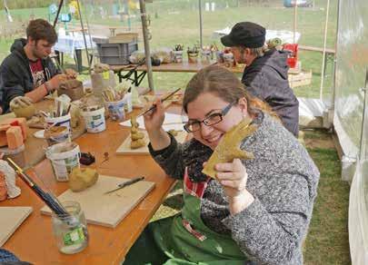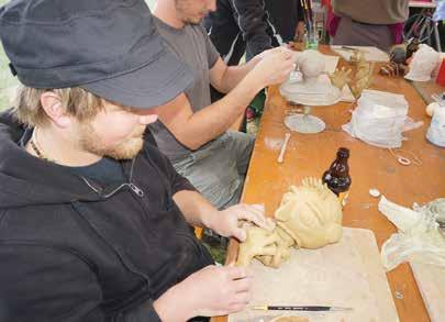 Über die Zeit ist auf diese Weise eine feste, freundschaftlich-familiäre Gemeinschaft entstanden, zu der regelmäßig Menschen neu hinzukommen. Unterstützt durch die besondere Atmosphäre des weit abgelegenen Arbeitsortes fangen die Menschen auf dem Hof an, gemeinsam kreativ zu werden. Dabei gibt es keine festen Vorgaben, keinen Zeitplan und keinen Produktionsdruck: Die Workshop-LeiterInnen stimmen ihr Angebot auf die Bedürfnisse und Anregungen der