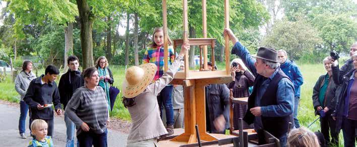 stammt und nun in Braunschweig Architektur studiert. Außerdem gibt es auf diesem ersten Museumsfest einen Flohmarkt. Da hier mit den Dingen auch immer ganz von selbst Geschichte und Geschichten ausgetauscht werden, ist er eine Vorstufe des Museumslabors, das im “Museum für Alles für Alle” eingerichtet werden soll. Mit professioneller ethnologischer, kuratorischer und künstlerischer Begleitung sollen die Geschichten und An-Sichten der DorfbewohnerInnen in Zukunft hier gesammelt, erforscht und präsentiert werden.6 Die Vision eines Dorf- und Kunstmuseums, das von den BürgerInnen getragen und bespielt wird, erhält beim ersten Museumsfest eine konkrete erlebbare Form. Trotz unbeständigen Wetters wird die AHP1 gut und ausdauernd besucht. Ein Modell für die Zukunft. Die Perfomance der Künstlergruppe, bei welcher eine „Herde von Tischen“ über die Straße getrieben wird, beendet das Museumsfest.