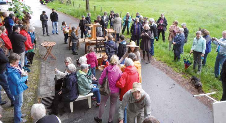 Pläne für die Zukunft Im Wesentlichen wurden die Konzeptansätze wie geplant ausgeführt. Wie immer in künstlerischen Prozessen ist aber der Verlauf offen und unvorhersehbar. Insbesondere die Zeitabläufe waren nicht wirklich planbar. So kam es immer wieder zu Verschiebungen, Verkürzungen oder einfach zu veränderten Abläufen, mit denen auf die jeweiligen Gegebenheiten reagiert wurde. Das ursprüngliche Vorhaben, möglichst viele der Ideen und Wünsche aus den Arbeitsgruppen konkret umzusetzen, konnte nur reduziert realisiert werden. Insbesondere das Vorhaben, die Verbindungs-Wanderwege zwischen den Gemeindeteilen neu zu beleben, musste wegen unklarer Zuständigkeiten zumindest zur weiteren Planung verschoben werden. Als nachhaltig kann vor allem die Planung des „Museum für Alles für Alle" gewertet werden, in dem eine Kontaktzone entstehen soll mit Café und Laden, Archiv und Tauschbörse. Die anfängliche Wunschidee eines „Dorfgemeinschaftshauses“ konnte überzeugend in eine Kontaktstelle der Dorfbevölkerung mit dem Kunst-Ort Kunstverein weiterentwickelt werden.