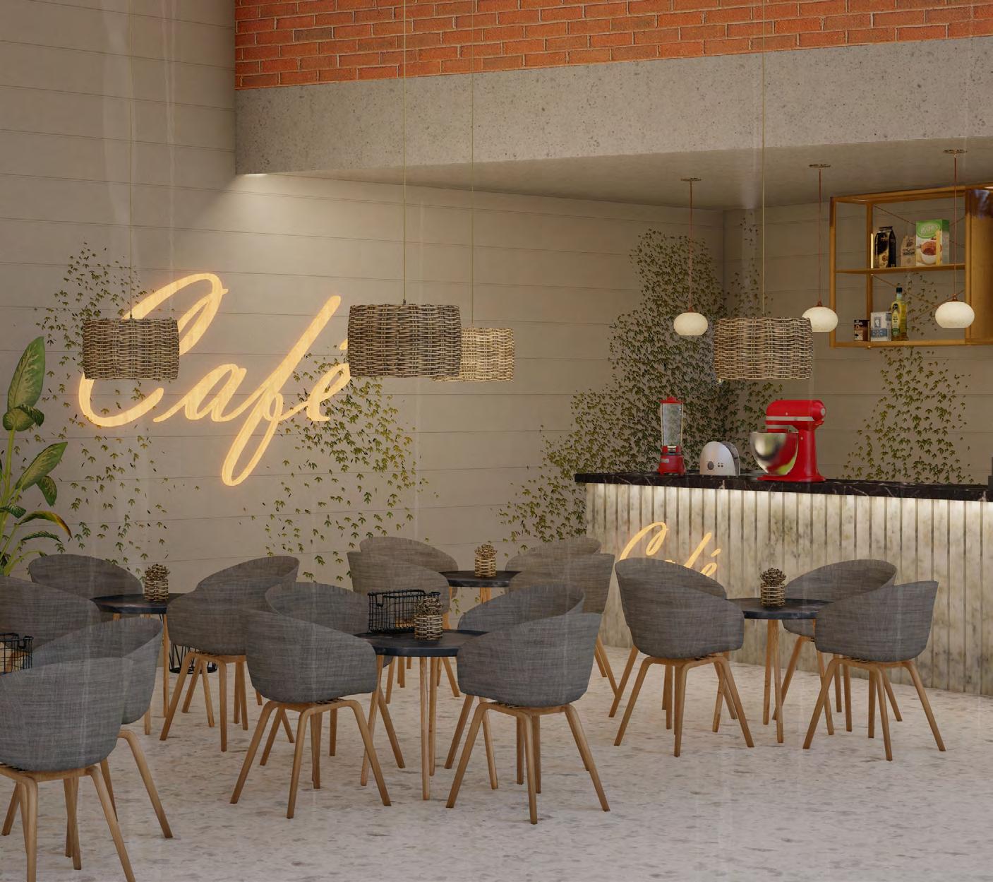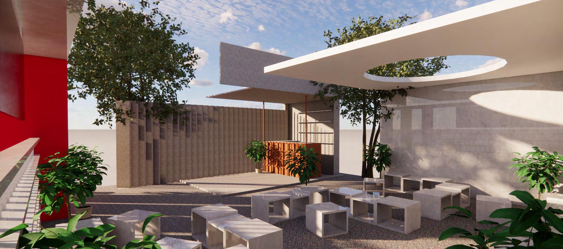 Our café, drawing from Chandigarh’s architecture, features an open dining area, stylish bar, efficient kitchen, and private event space.