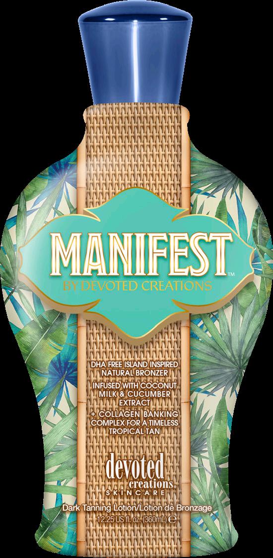 Your effortless, resort-ready results await with Devoted Creations Manifest™! The DHA-free, streak-free and stain-free natural bronzing cocktail features a soothing coastal blend of coconut juice, avocado and oat extract, providing deep nourishment and softening for a wave of lush hydration. Manifest™ is enriched with a Collagen Banking Complex and skin-toning elements, leaving your skin with a timeless, youthful glow. Inspired by tropical, timeless results? Achieving it is now within reach—just Manifest™ it!
