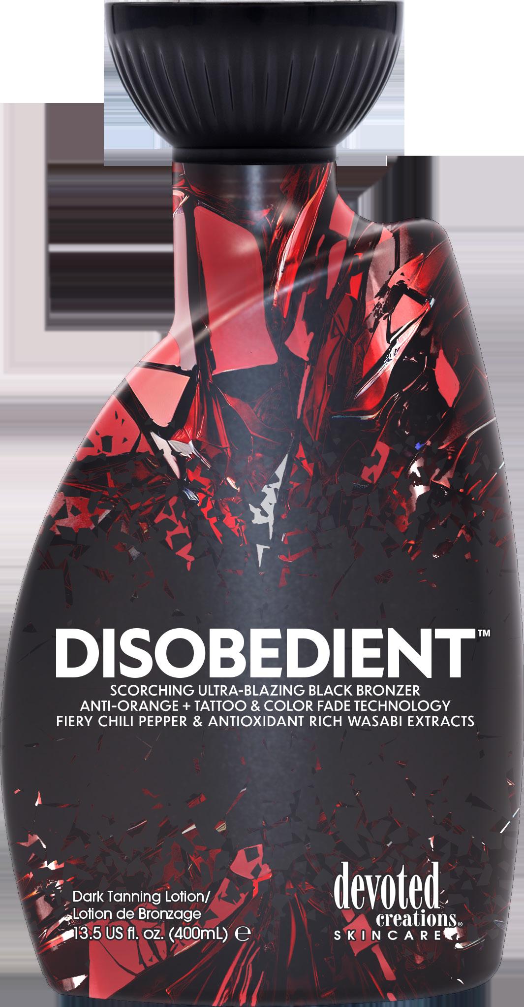 Get ready to ignite your tan with Disobedient™ - This triple blazing black bronzer transforms your tanning routine into a scorching inferno! Disobedient™ defies all limits – delivering a powerhouse of the most drastic, deepest and darkest results imaginable! This rebellious formula is a renegade in the world of tanning, packed with revolutionary ingredients like chili pepper and wasabi extracts to light up your luminosity, while turmeric and niacinamide wage war on the appearance of skins imperfections. With a formula that’s as innovative as it is intense, when Disobedient™ touches your skin, you’ll feel the frenzy of fiery heat and start to sizzle your way to a sultry, red-hot radiance from the hottest tingle on the market! Bottle