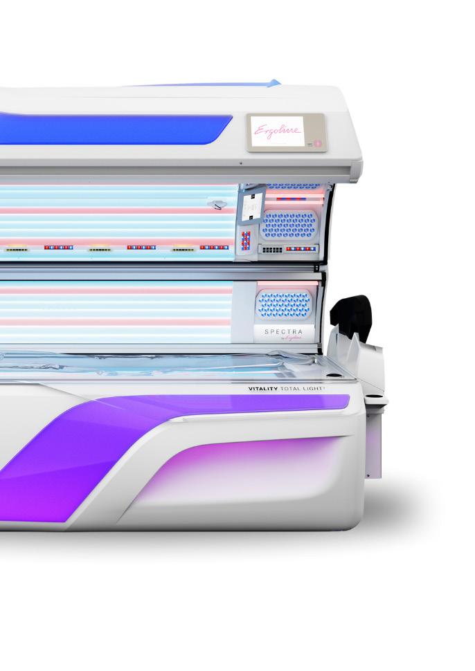 Total Light Technology (TLT) is the premium choice that combines UV, Red & Blue LEDs into your tanning experience. Total Light Technology combines UV light with red and blue LEDs to provide a perfect tan while offering additional skincare benefits for a deep, long lasting, and natural tan.
