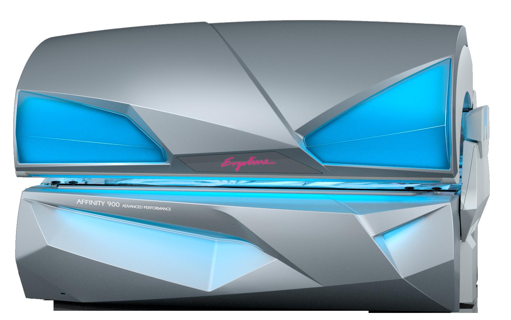 The Affinity range combines classic elegance with clever ideas and unbeatable value The Affinity Series has been the backbone of mid- and top-level tanning for almost a decade. The Affinity 900 builds on the success of previous models with consistent superior tanning performance, comfort, and low-maintenance operation. Air Condition, Aqua Fresh and Aroma are standard as well as optional 3D shoulder tanners, Like the top models, the Affinity 900 has 4 facial tanners and 50 UV lamps.