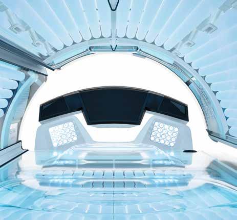 The U VA L E D s provid e a m o r e e n e r g y ef fici e nt a nd com f ort a bl e e xp e ri e nc e f or t he t a nn e r . With less heat output for the tanner and also for the operator, the temperature in the room is better controlled and the tanner experiences a more comfortable and relaxing session.
