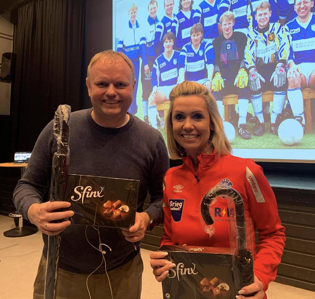 Vi støtter hvert år Morodalsfestivalen i Nord-Odal, en omvendt inkluderende festival for psykisk utviklingshemmede, og alle andre. I den forbindelse inviterte vi, i samarbeid med Nord-Odal Idrettslag, til et foredrag med Roger Finjord (bildet). Han er et unikum av en foredragsholder og hans foredrag underholder – og rører. June Mariell Hansen, leder for fotballgruppa i Honningsvåg turn og idrettsforening, deltok også. Hun er brennende opptatt av rekruttering og jentenes rolle i fotballen.