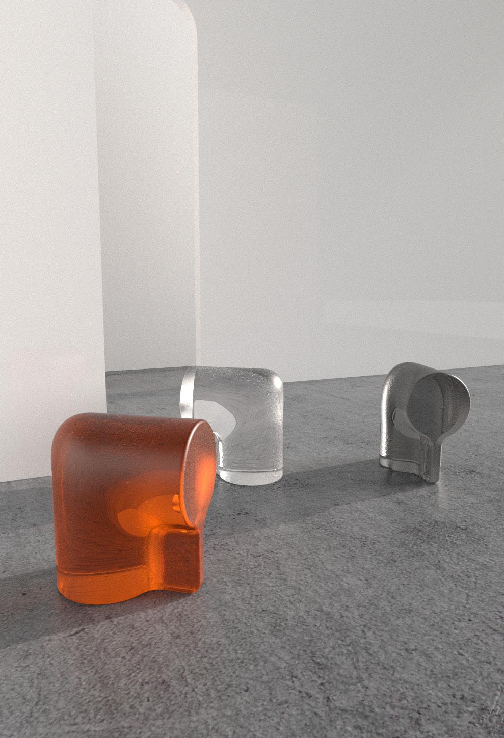 The name of the stool comes from its distinct 90-degree corners. Inspired by the shape of elbow gland pipelines, which are used to assist in turning corners. KORNER features the seamless integration of round corners that is enriched by its materiality—plastic. This materiality of Plastic makes for a lightweight yet sturdy structure, that is further anchored down by the rectangular support. KORNER aims to accentuate the beauty of pipelines which are usually hidden during construction, bringing it into the spotlight.