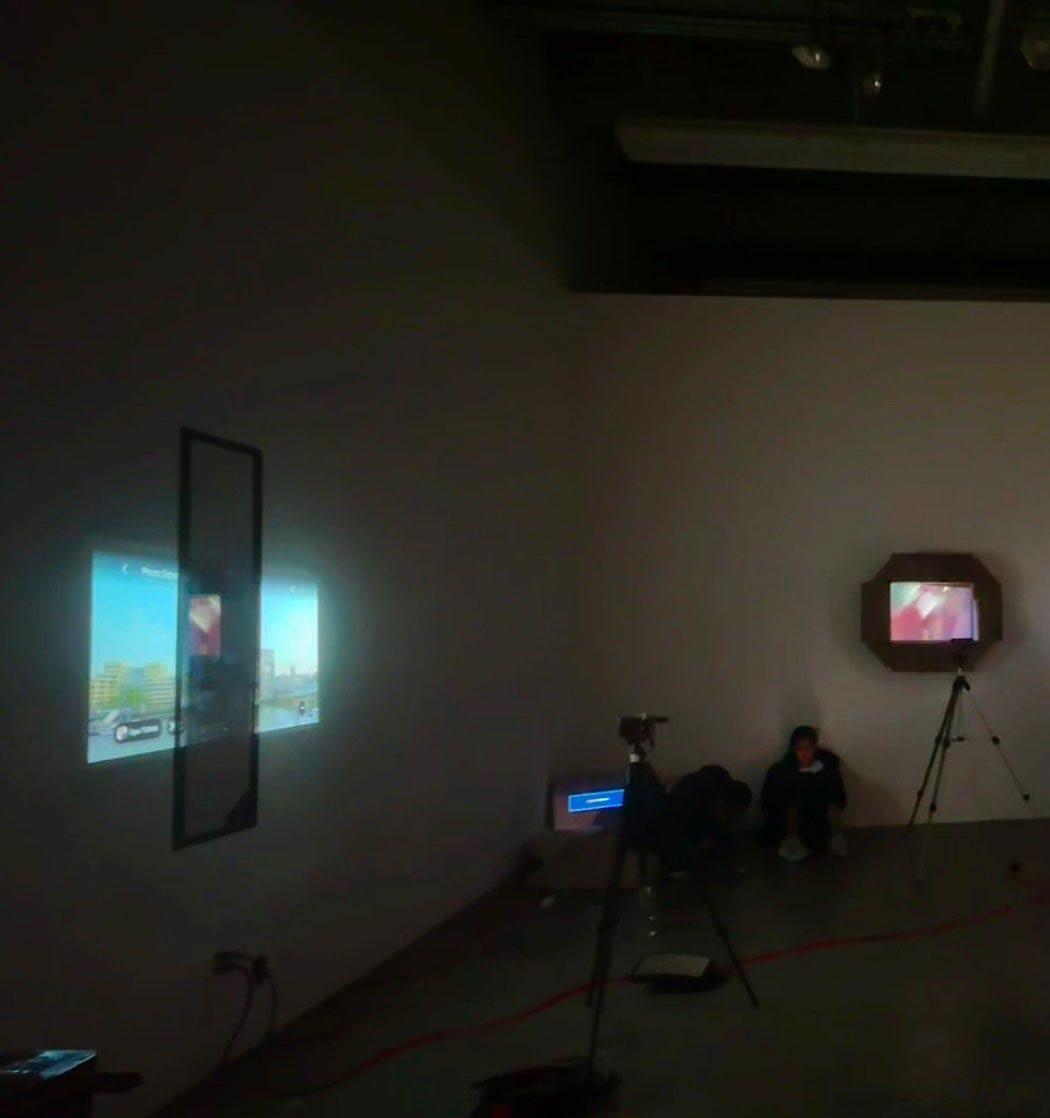 This installation is the first iteration of an ongoing project that will document public spaces that are taken over by local dancers. The videos projected were all filmed by dancers on the outdoor balcony of Saint Magnus House in central London, a corporate building on the north side of the Thames River adjacent to London Bridge. They are projected on a mirror such that it reflects on the wall across from it, allowing the audience to immerse themselves in the spatial phenomenon that is a guerrilla dance space.