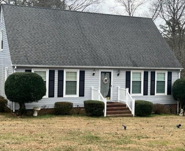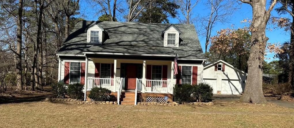 Gwynnfield Subdivision-Attractive Cape Cod with 1512 SF. Spacious living room, dining room combination that adjoins kitchen. Half bath off from foyer and close to kitchen. Primary bedroom with 2 large closets and dual vanity bath on first floor. Upstairs are 2 bedrooms that share a hall bath. Washer/Dryer in bathroom upstairs. Two car detached garage with automatic garage door openers. Porch on front of house and shaded deck on back. No HOA, however, voluntary $100 per year allows use of community amenities including sand beach, boat ramp, and dock on Rappahannock River. Call Betsy Sisson. 804 450-1773