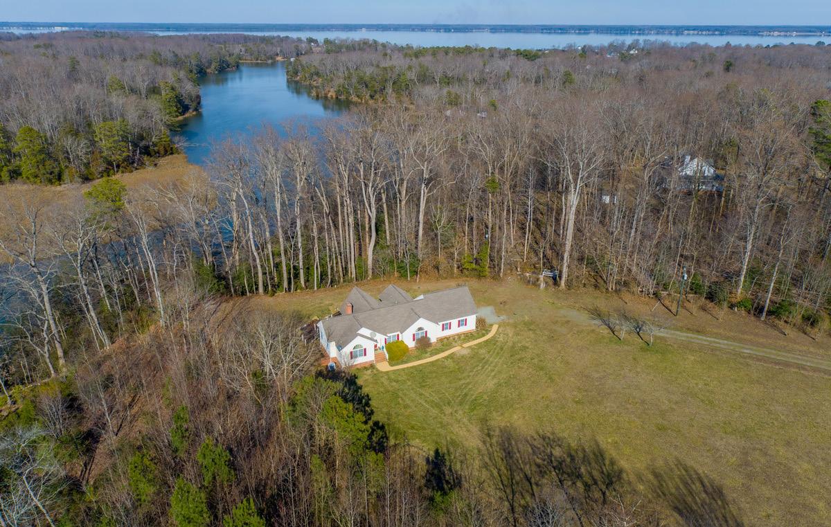 Water View Area – 3 bedroom, 2 bath custom ranch style house. Fireplace that is open to primary bedroom and living room, open floor plan. 2 car attached garage, unfinished basement has many possibilities. Automatic house generator. Pier with boatlift, long views of Parrotts Creek – easy access to Rappahannock River. 20 mostly wooded acres. $749,500