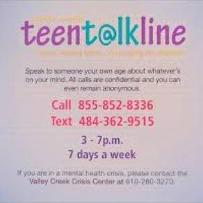 Have you heard about the Teen Talk Line in Chester County?