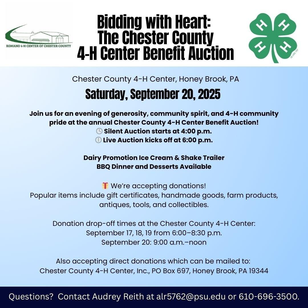 It is that time of year again that we are preparing for the annual Chester County 4-H Center Benefit Auction on September 20, 2025.