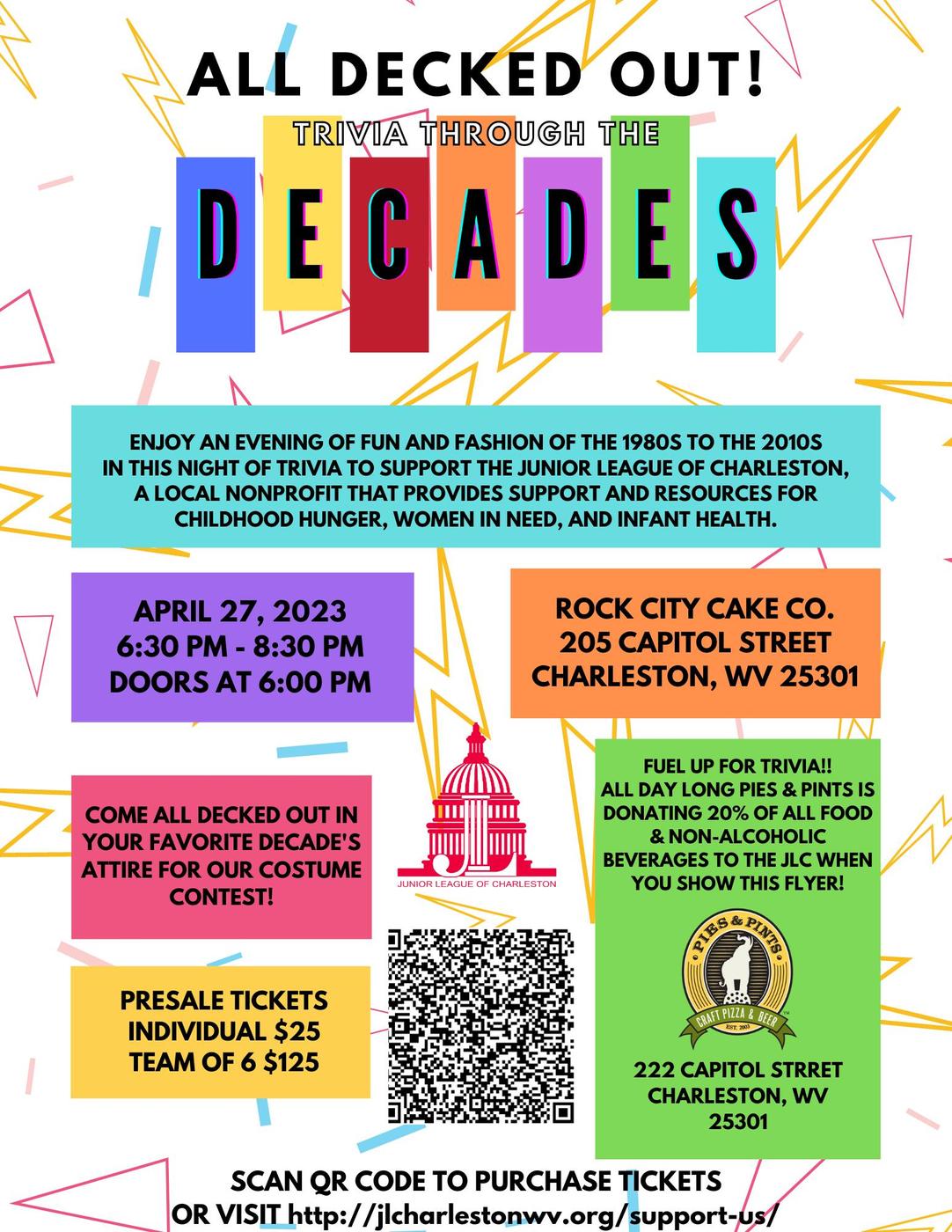 Now, our spring fundraiser, “All Decked Out: Trivia Through the Decades!” is almost here! Join us on April 27 at Rock City Cake Co for for this fun evening of trivia from the 80’s to the 2010’s. Come decked out in an outfit from your favorite decade to participate in a costume contest and be sure to keep your eyes open for the silent auction! Want to help out or fulfill a volunteer requirement through trivia? Click here to sign up.
