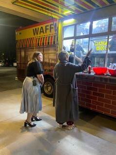 One of our members’ favorite events of the League year is our December Sip & Shop! This holiday-themed event takes place during our December GMM and features local vendors displaying their festive goods for purchase. This year, our fantastic Membership Director Kristin Varnadore and Member Services Chair Macie Lee Reeves arranged for a Waffle House truck to cater the event. Yummy!